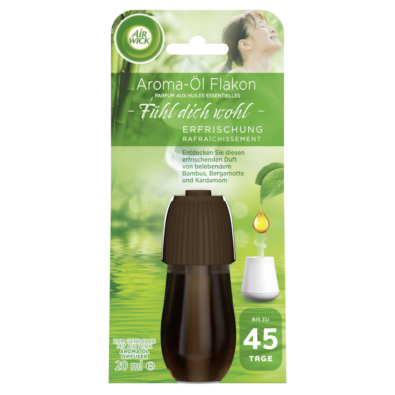 Air Wick Aroma-Öl Flakon Erfrischung - Entdecken Sie diesen erfrischenden Duft von belebendem Bambus, Bergamotte und Kardamom.