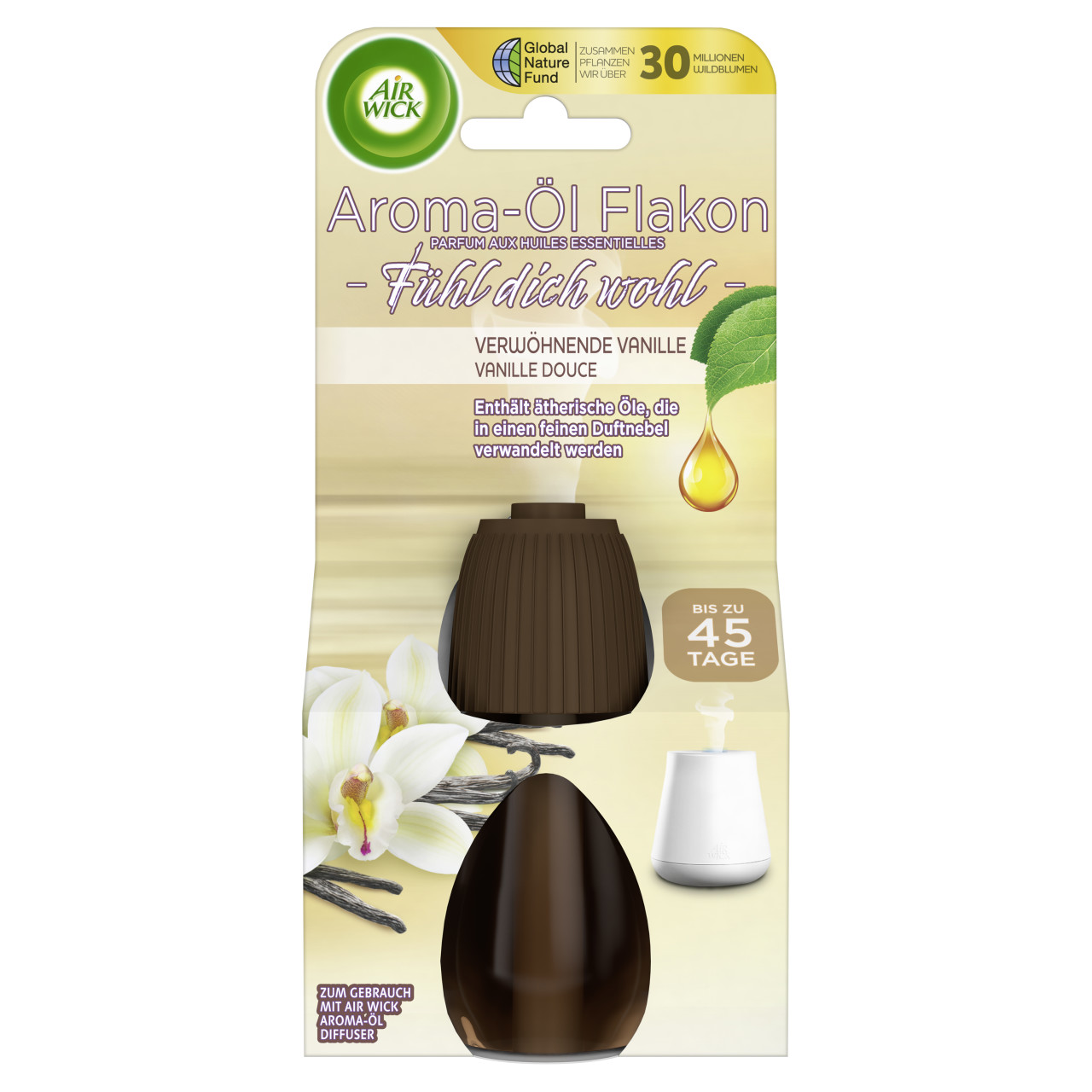 Air Wick Aroma-Öl Flakon Verwöhnende Vanille - Schaffen Sie eine wunderbare Atmosphäre in Ihrem Zuhause mit dem wohlig-warmen Duft von verwöhnender Vanille