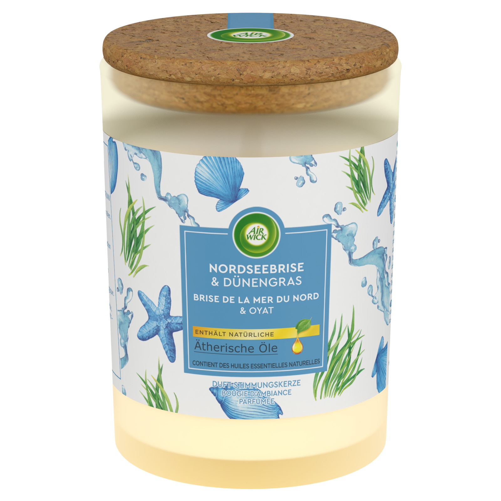 Air Wick Duft-Stimmungskerze Nordseebrise & Dünengras - Der angenehme frische, würzige Duft der Nordsee schafft eine entspannende Urlaubsstimmung in Ihrem Zuhause.