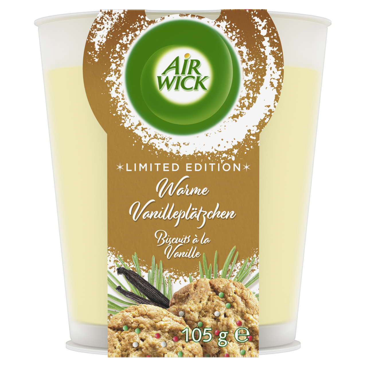 Air Wick Wohlfühl-Duftkerze Warme Vanilleplätzchen - Lassen Sie sich von der Magie des Winters und dem Duft von warmen Vanilleplätzchen verzaubern