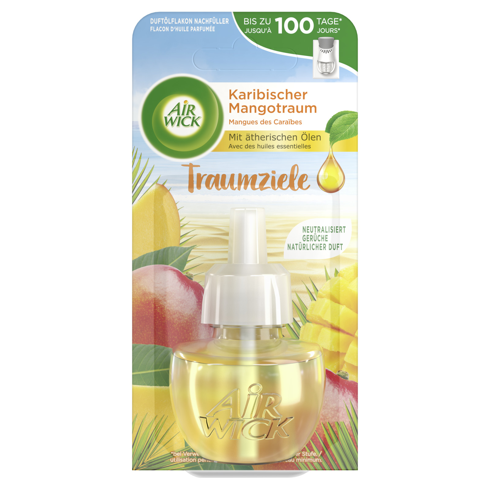 Air Wick Duftölflakon Nachfüller Karibischer Mangotraum - Stillen Sie Ihr Fernweh und holen Sie sich e otische Destinationen und Urlaubsgefühle einfach nach Hause mit dem fruchtig-süßen Duft von frisch gepflückten Mangos der Karibik.
